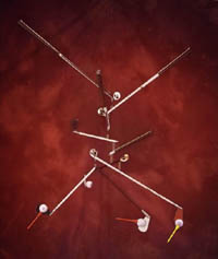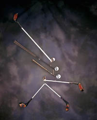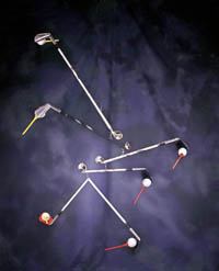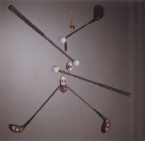 Broken club sculptures are an attempt to balance the forces of good and evil in golf, therefore life. And when we lose that balance mobiles freeze in time that moment of anger when clubs are tossed. |